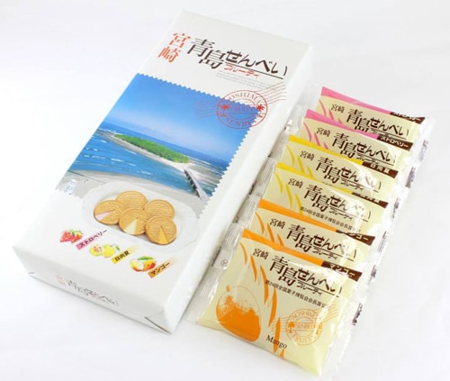 宮崎を代表する観光地「青島」の写真がインパクトの強い「青島せんべい」です。